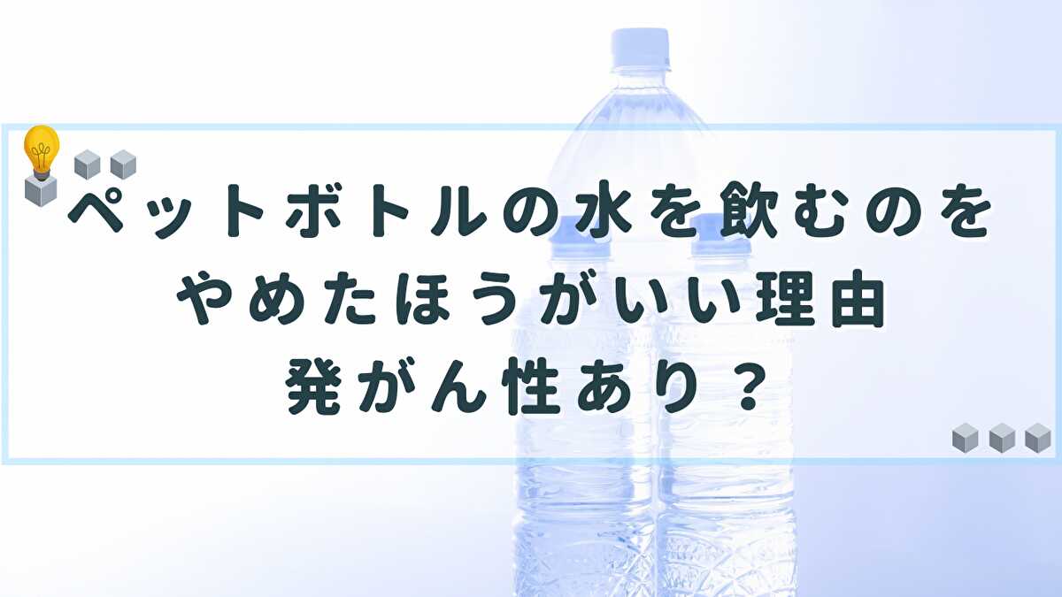 ペットボトルの水を飲むのをやめた方がいいとされる理由は、健康面への影響が心配されるからです。