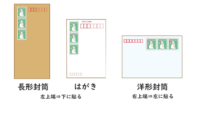 - 洋式封筒や定形外郵便物も貼る場所は変わらない