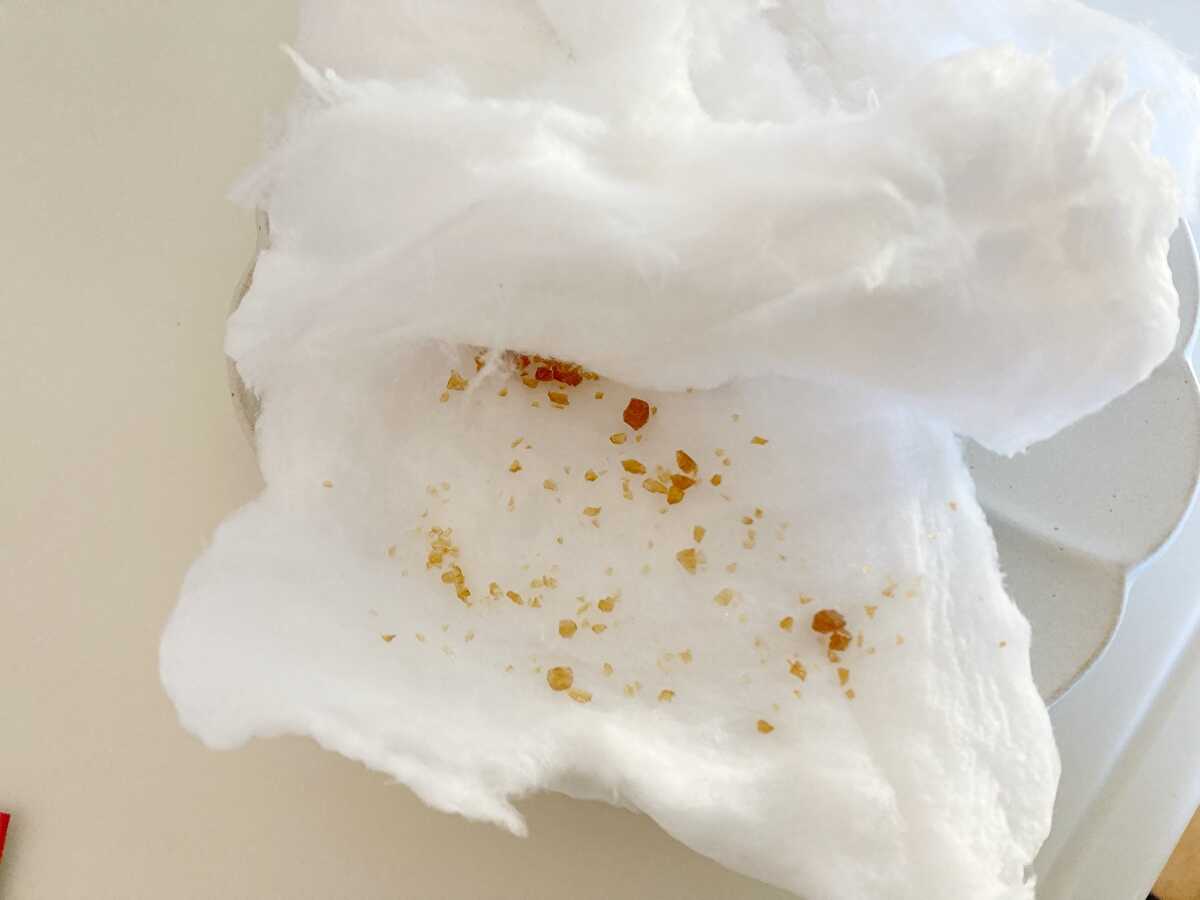 - わたあめの中に、パチパチパニックのキャンディ部分を入れる