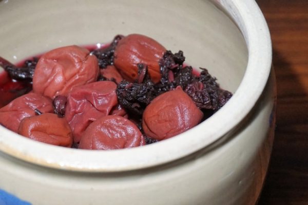 *赤紫蘇は入れたいけど、アク取りは面倒という場合は、市販の“揉み紫蘇”や“酢漬けの紫蘇”を使ってもいいですね。また、赤紫蘇はなくても白くてきれいな梅干しはできます。ですが、保存効果がアップしてきれいな赤色になるので、お好みで入れてください。