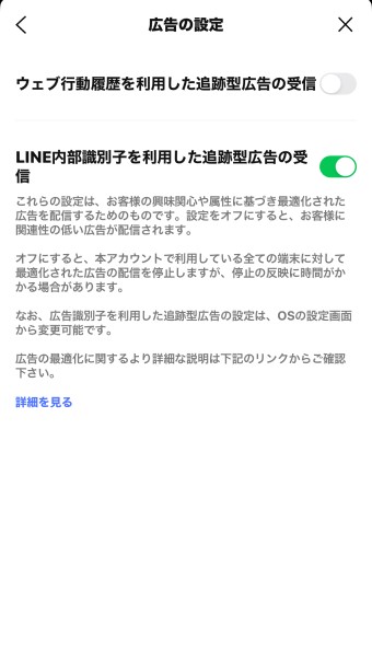 LINEの設定(画面右上の歯車マーク)>プライバシー管理>広告の設定