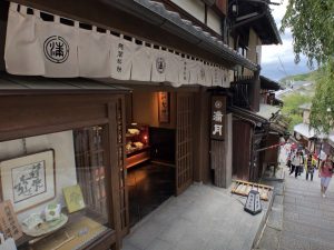 清水寺の参拝帰りに寄れる清水参寧坂店は、幕末の志士がよく利用していた旅宿で、坂本龍馬の定宿でもあったと言われる”明保野亭”の斜め向かいにあります。