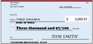 外国の小切手を、日本の銀行で現金化するのも時間もかかります。