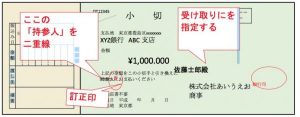 - 持参人払式小切手(「持参人」を訂正して「記名式小切手」「指図式小切手」にできる)