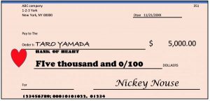 海外の小切手を日本円の口座に入金の場合は外国為替取り扱いの支店へ持ち込みますが、換金手数料が取られます。