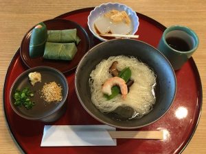 本店のお食事は白龍だけでなく、奈良名物の柿の葉寿司や笹寿司、吉野本葛入りくず餅や抹茶わらび餅も堪能できます。