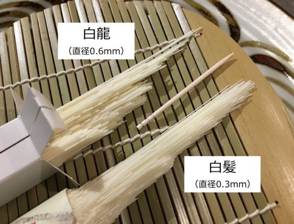 白龍と白髪がいかにすごいかわかり易くするため、家庭用素麺の白瀧乃糸も載せてみました。