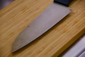 - 大きく育ったタラの芽は、包丁の背でとげをそぎ落とすとよい