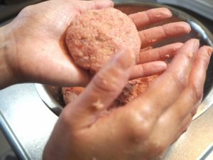 この方法は、ひき肉が空気に触れるのを極力避けることができます。