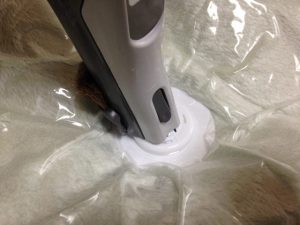 布団圧縮袋に玄米の袋をいれて、掃除機で空気を吸い込みます。