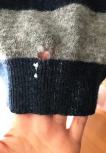この虫は”カツオブシムシ”の幼虫で、衣類にもつきます。