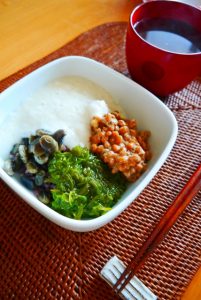 • 納豆とめかぶを混ぜて、ごはんに乗せる(めかぶ丼