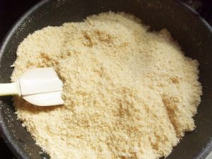 - フライパンにおからを入れ、サラサラになるまで炒ります