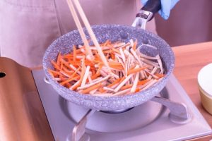ポイントは、ごぼうの水分が抜けないようにすることです!