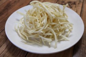 - 皮をむいて、ささがき、乱切りなど、使いやすい形に切る