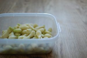 - らっきょうの塩漬けを保存容器から出す