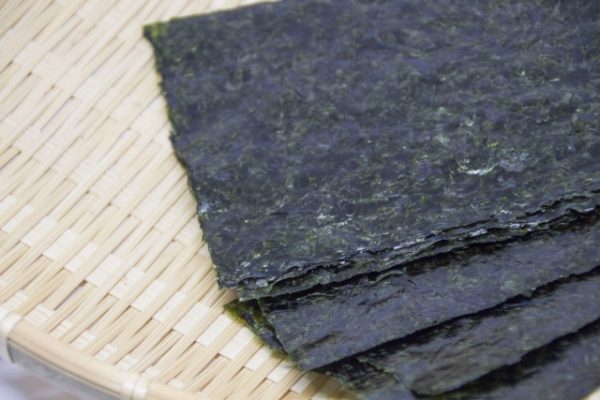 乾海苔は生の海苔を成型したもので、焼いて水分を飛ばし、パリッとした食感を味わいます。