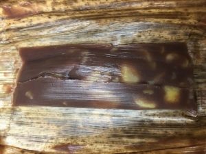 羊羹を包んでいる銀色の包装紙が劣化し、が開いていた。