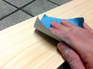 - お湯にサンドペーパーを浸し、サンドペーパーが濡れているうちに鏡を磨く