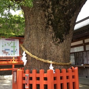 境内の中にある御神木の楠は樹齢800年で、幹の中が空洞で「胎内くぐり」ができます。