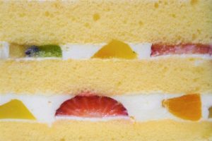 上記画像は断面がまっすぐで、中のフルーツも形がしっかりしていますね。新鮮なケーキです。