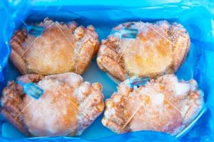 カニの身に含まれている旨みを逃がさず、食感を保つため、販売業者はカニを氷で覆うグレース加工をしています。