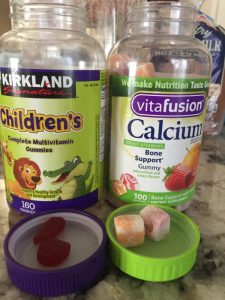 下の写真左下が「マルチビタミングミ」で、右下がカルシウムが簡単に摂取できるグミです。
