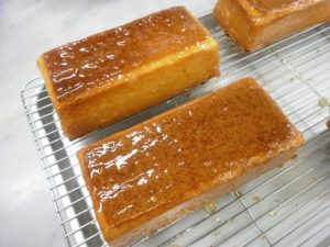 パウンドケーキの底の部分も冷めるように、上の写真のように底面を浮かせて冷ますとよいです。
