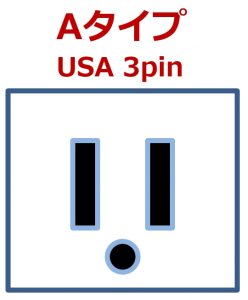 グアムホテル電源コンセント形状 Aタイプ: USA 3pin