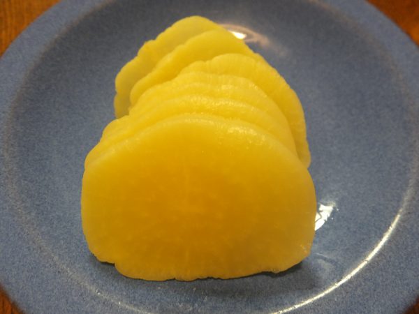 ちなみにスーパーなどで売られている市販品の多くは塩押したくあん(糖絞りたくあん)です。