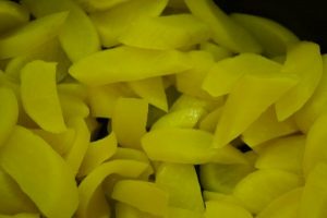 - たくあんを細切りにし、30分~1時間水にさらしておく。