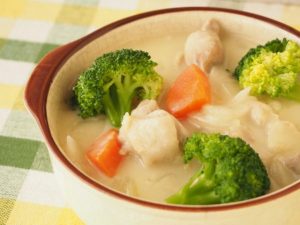 ブロッコリーにはビタミンCが豊富に含まれており、抗酸化作用の効果が期待されています。水溶性のビタミンCは茹でると流れ出てしまうため、シチューなどの煮込み料理に入れて食べると良いでしょう。