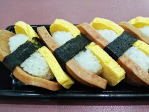 また、卵とスパムでご飯を挟んだスパムムスビも人気です。