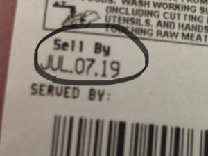 「Sell By JUL.07.19」と記載された以下のような商品は、「7月19日までに売ること」という意味。つまり消費期限に近いわけです。