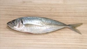 - アジを丸ごと一尾よく洗い、汚れと水分を拭き取る(ウロコ、内臓、尾なども取りません)