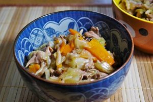 キャベツとスパム、卵は相性が良いですが、冷蔵庫の残り野菜をなんでも使って丼にしてしまいましょう!