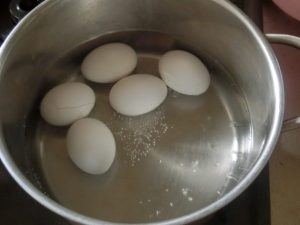 - 茹でた卵をすぐに冷たい水につけて、5分ほど待つ