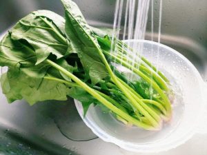 - ほうれん草を洗う