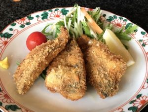 長崎県松浦市の港に揚がったアジでお刺身にできる鮮度のものを、フライで食べられます。