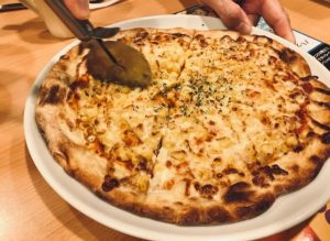 ピザにホワイトソースとチーズを乗せて濃厚さが増すのですが、なぜかペロリと食べられる一品です!