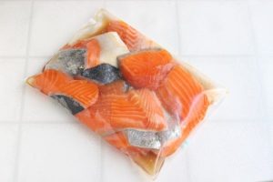 下味の塩分で白身魚から水分が流れ出るので、手早く作業して凍らせてしまいましょう!