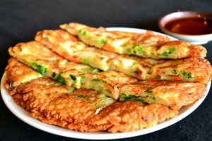 チヂミの粉は、【小麦粉:片栗粉:水=1:1:2】の割合が目安です。カリカリ感を増したければ小麦粉、モッチリ感を増したければ片栗粉の割合を少し増やして下さいね。