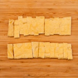 - 玉ねぎ(小1個)を薄切り、ピーマン(2個)を5mm幅に切る