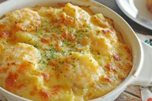 お好みのグラタンを作って、カッテージチーズを乗せて焼くだけです。あっさりした味わいのグラタンになり、カロリーオフもできますよ♪