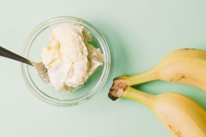 【ココナッツミルク:生クリーム=1:1】の割合で混ぜて、お好みの分量の熟したバナナとはちみつを入れます。