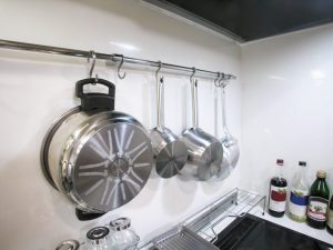 できればコンロ下に収納したり、収納グッズを使った見せる収納なども良いかと思います。