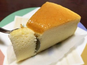 普通のチーズケーキと同じく、焼き上がりは焦げ目に反して、全体的にプルプルした印象を受けるようです。