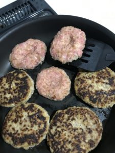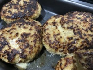 固いパサパサのハンバーグになってしまい、タネなのか焼き方なのか、どちらが悪いのかもわかりません。