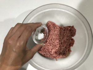 実はつなぎがなくても、捏ねるだけで肉同士の粘着力は高まり、塩がその結合を強くするので、つなぎが無くてもハンバーグ自体は完成するのです。