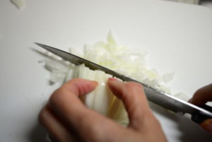 乳液のような白い液体が出るのは、ビタミンやミネラルが豊富な玉ねぎで、水にさらす必要もないのだそう。